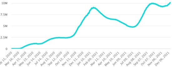 Test: 14,048,253 people tested since the first case (30,836 in 24 hours) Vaccination: 14,032,710 million doses of vaccine injected since December 14, 2020, date of the first injection (+34,001 in 24 hours), latest data available - MSSS dated December 14, 2021) FRANCE: * Cases confirmed since the first case (January 24, 2020): 8,334,133 cases (+63,405 cases in 24 hours), the day before (+12,036) * Healings: 7,362,608 healings (+32,348), the day before (+30,454) National Healing Rate: 88.34% (-) Death: 120,832 deaths (+158 in 24 hours), the day before (not available) National death rate: 1.44% (-) * Active cases: (excluding death and cures) 850,693 (+30,656 in 24 hours), the day before (-18,418) France: Trend of active cases: (less healings and deaths)