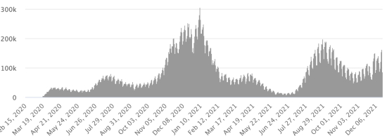 4th wave: The total of the 4th wave (beginning of September 20, 2021) amounts to 4,458 confirmed cases and 155 deaths . Screening since the start of the pandemic: 149,525 tests (+437 in 24 hours) since March 19, 2020, latest data available. Note that the very low number of people screened does not statistically make it possible to make a representative estimate of the situation in the country, which results in a low number of cases confirmed daily and a largely underestimated assessment. By comparison, the Dominican Republic has performed more than 2.5 million tests on its population since the start of the epidemic. TOP 5 most affected municipalities in the West (2021): Delmas: 2.662 (+0); Pétion ville 2,049 (+0); Port-au-Prince 1,420 (+0); Tabarre 1,187 (+0); Croix-des-Bouquets 1,164 (+0) Confirmed cases by department (2021): West: 9,832 (2020: 6,945 cases) North: 670 cases (2020: 677 cases) Center: 1,009 cases (2020: 508 cases) Artibonitis: 821 cases (2020: 593 cases) Northeast: 399 cases (2020: 314 cases) Southeast: 749 cases (2020: 274 cases) South: 819 cases (2020: 262 cases) Northwest: 404 cases (2020: 229 cases) Grand'Anse: 844 cases (2020: 176 cases) Nippes: 246 cases (2020: 149 cases) Cumulative deaths by department (2021): West: 264 deaths (2020: 104 deaths) North: 53 deaths (2020: 34 deaths) Center: 57 deaths (2020: 13 deaths) Artibonitis: 36 deaths (2020: 39 deaths) Northeast: 6 deaths (2020: 6 deaths) South: 48 deaths (2020: 6 deaths) Southeast: 13 deaths (2020: 9 deaths) Northwest: 15 deaths (2020: 12 deaths) Grand'Anse: 7 deaths (2020: 13 deaths) Nippes: 25 deaths (2020: 5 deaths) Distribution of deaths by age (since the start of the epidemic): 0-9 years: 13 deaths 10-19 years: 9 deaths 20-29 years: 26 deaths 30-39 years: 48 deaths 40-49 years: 77 deaths 50-59 years: 122 deaths 60-69 years: 176 deaths 70-79 years: 169 deaths 80 years and over: 125 deaths Vaccination: 189,722 doses of “Spikevax” vaccine from the MODERNA Laboratory have been injected in total in Haiti since July 16, 2021, the date of the first injection through 149 open vaccination centers https://www.haitilibre.com/en/news-35051-haiti-covid-19-list-of-149-vaccination-centers-open-in-the-country.html . 120,228 Haitians (1.03% of the population) have received a first dose of vaccine and 69,494 are fully vaccinated (2 doses, 0.59% of the population). Update 5 December 2021 latest information available (source MSPP) List of 149 vaccination centers open in Haiti (and hours) by department: (update 20 October 2021) DIASPORA: Epidemiological situation: USA: * Case since first case (February 29, 2020): 51,696,205 cases (+85.924 in 24 hours), the day before (+174,629) * Healings: 40,515,145 healings (+40,799 in 24h), the day before (+67,550) National Healing Rate: 78.37% (-) * Death: 827,206 deaths (+487 in 24 hours), the day before (+2,199) National death rate: 1.60% (=) * Active cases (less deaths and recoveries): 10,353,854 cases (+44,638 in 24 hours), the day before (+104,880) Test: 785,952,372 last available data. USA: Number of daily confirmed cases: