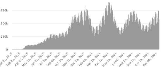 WORLD SITUATION: Epidemiological situation: Tuesday, December 21, 2021, the number of people worldwide infected with the Covid-19 coronavirus and its variants since the start of the pandemic amounts to 275,839,211 cases (+775,286 in 24 hours), the day before ( +480,373) Number of contaminated countries: 221 * Healings: 247,547,448 people were cured of Covid-19 worldwide (+697,911 in 24 hours), the day before (+439,986) * Deaths: 5,377,934 people died from Covid-19 around the world (+5,746 in 24 hours), the day before (+3,990) * Active cases (less deaths and recoveries) in the world is currently 22,913,829 cases (+71,629 in 24 hours), the day before (+36,397) Average cure rate in the world: 89.74% (=) Average death rate in the world: 1.94% (-) World: Number of daily confirmed cases: