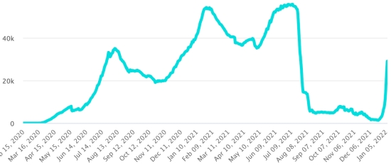Vaccination: 9.4 billion doses of vaccine injected (+30 million doses injected in 24 hours. Update January 7, 2022 (latest data available). HAITI: Epidemiological situation: According to the Ministry of Public Health, +103 new cases in 24 hours of Covid-19 and its variants were confirmed in Haiti on January 5, 2022 (latest partial data available ) for a total of 26,509 cases confirmed throughout the national territory (47.6% women and 52.4% men), since the first case (March 19, 2020 https://www.haitilibre.com/en/news-30319-haiti-health-origin-of-the-first-2-cases-of-covid-19-in-haiti.html). Previous update (+147 cases on January 3 and 4, 2022). Healings: 23,654 (+70 in 24h) Healing rate: 89.23% (+) Deaths: 780 +0 deaths in 24 hours () Death rate: 2.94% (-) 5th wave (dominant omicron): Total of the 5th wave (start December 27, 2021) amounts to 514 confirmed cases and 14 deaths Haiti: Trend of active cases: (less healings and deaths)