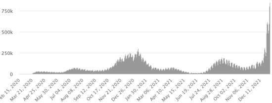 Test: 15,246,492 people tested since the first case (+61,305 in 24 hours) Vaccination: 15,503,396 million doses of vaccine injected since December 14, 2020, date of the first injection (+99,186 in 24 hours), latest data available - MSSS dated January 7, 2022) FRANCE: * Cases confirmed since the first case (January 24, 2020): 11,511,452 cases (+328,214 cases in 24 hours), the day before (+261,481) * Healings: 8,452,170 healings (+58,343), the day before (+57,924) National Healing Rate: 73.42% (-) Death: 125,206 deaths (+193), the day before (+204) Death rate: 1.08% (-) Active cases: 2,934,076 (+269,678 in 24 hours), the day before (+203,353) Test: 188,795,159 (last data available Jan. 1, 2022) France: Number of daily confirmed cases