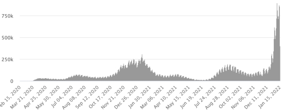 Vaccination: 9.63 billion doses of vaccine injected (+30 million doses injected in 24 hours. Updated January 14, 2022 (latest data available). HAITI: Epidemiological situation: According to the Ministry of Public Health, +172 new cases in 24 hours of Covid-19 and its variants were confirmed in Haiti on January 11, 2022 (latest partial data available ) for a total of 27,490 confirmed cases throughout the national territory (48.2% women and 51.8% men), since the first case (March 19, 2020 https://www.haitilibre.com/en/news-30319-haiti-health-origin-of-the-first-2-cases-of-covid-19-in-haiti.html ). Previous update (+236 cases on January 10, 2022). Healings: 23,983 (+56 in 24h) Cure rate: 87.24% (-) Deaths: 780 deaths +0 since January 7, 2022 (last data available) Death rate: 2.83% (-) 5th wave (dominant omicron): Total of the 5th wave (starting December 27, 2021) amounts to 1,495 confirmed cases and 14 deaths Haiti: Active Cases Trend: (less recoveries and deaths)