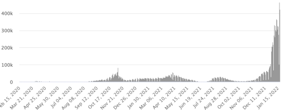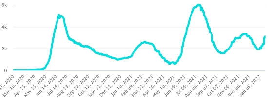 (Day-1) Vaccination: 9.82 billion doses of vaccine injected (+20 million doses injected in 24 hours. Updated January 20, 2022 (latest data available). HAITI: Epidemiological situation: According to the Ministry of Public Health, +87 new cases in 24 hours of Covid-19 and its variants were confirmed in Haiti on January 16, 2022 (latest partial data available ) for a total of 28,117 confirmed cases throughout the national territory (48.2% women and 51.8% men), since the first case (March 19, 2020 https://www.haitilibre.com/en/news-30319-haiti-health-origin-of-the-first-2-cases-of-covid-19-in-haiti.html ). Previous update (+57 cases on January 15, 2022). Healings: 24,217 (+53 in 24h) Cure rate: 86.12% (-) Deaths: 780 deaths +0 since January 7, 2022 (last data available) Death rate: 2.77% (-) 5th Wave (Omicron Dominant): Total of the 5th wave (beginning December 27, 2021) amounts to 2,122 confirmed cases and 14 deaths Haiti: Active Cases Trend: (less recoveries and deaths)