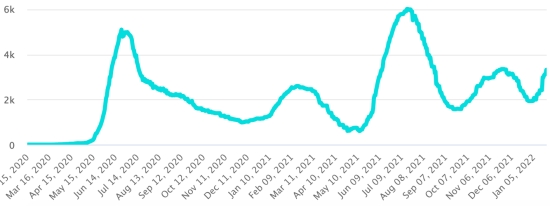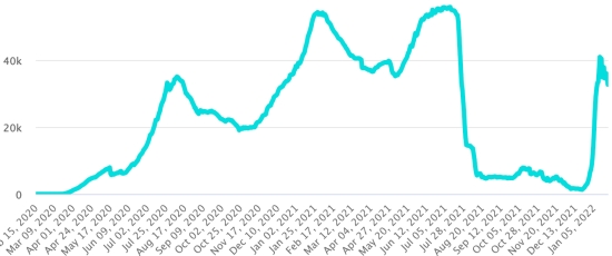 (Day-1) Vaccination: 533.92 million doses of vaccine injected since December 14, 2020, date of the first injection in the United States (1.07 million doses injected in 24 hours. Updated January 22, 2022 ( latest data available). DOMINICAN REPUBLIC: Confirmed cases since March 1, 2020:536,767 cases (+5,769 in 24 hours) the day before (+6,363). First case (March 1, 2020) Healings: 499,802 healings (+7,548), the day before (+7,918) National Cure Rate: 93.11% (+) Deaths: 4,285 deaths (+6 in 24 hours), the day before (+5) Death rate: 0.79% (-) Positive rate over 4 epidemiological weeks: 30.6% (-) Active cases: (excluding deaths and recoveries) 32,680 cases (-1,785) the day before (-1,560) Dominican Republic: Trend of active cases: (minus recoveries and deaths)