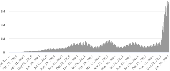GLOBAL SITUATION 2019-2022: Epidemiological situation: Sunday January 30, 2022 the number of people infected worldwide with the Covid-19 coronavirus and its variants since the start of the pandemic (March 11, 2020) amounts to 373,317,812 cases (+2,700,781 in 24 hours ), the day before (+3,427,610) Number of countries infected: 221 *Healings: 294,861,612 people have been cured of Covid-19 worldwide (+2,175,946 in 24 hours), the day before (+2,249,515) *Deaths: 5,676,912 people died of Covid-19 worldwide (+8,391 in 24 hours), the day before (+10,477) *Active cases (minus deaths and recoveries) in the world is currently 72,779,288 cases (+516,444 in 24 hours), the day before (+1,167,618) Average cure rate in the world: 78.98% (+) Average death rate in the world: 1.52% (-) World: Number of daily confirmed cases: