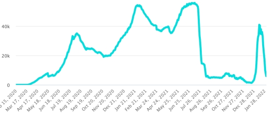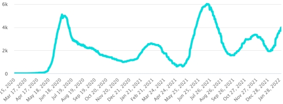 (Day-1) Vaccination: 539.92 million doses of vaccine injected since December 14, 2020, date of the first injection in the United States (+580,000 doses in 24 hours). Update February 1, 2022 (latest data available). DOMINICAN REPUBLIC: Confirmed cases since March 1, 2020: 556,520 cases (+1.275 in 24 hours) the day before (+1.193). First case (March 1, 2020) Healings: 546,266 healings (+2,511 in 24 hours), the day before (+2,549) National Cure Rate: 98.15% (+) Deaths: 4,310 deaths (+3 in 24 hours), the day before (+2) Death rate: 0.77% (=) Positive rate over 4 epidemiological weeks: 28.5% (-) Active cases: (excluding deaths and recoveries) 5,944 cases (-1,239 in 24 hours) the day before (-1,378) Dominican Republic: Trend of active cases: (minus recoveries and deaths)