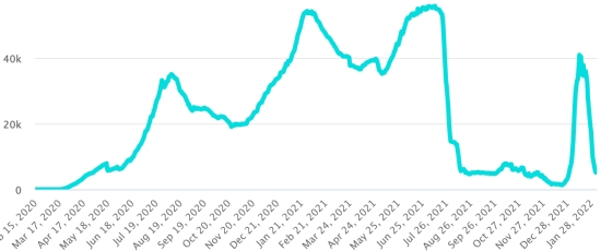 (Day-1) Vaccination: 541.41 million doses of vaccine injected since December 14, 2020, date of the first injection in the United States (+780,000 doses in 24 hours). Update February 3, 2022 (latest data available). DOMINICAN REPUBLIC: Confirmed cases since March 1, 2020: 558,936 cases (+1,017 in 24 hours) the day before (+1,399). First case (March 1, 2020) Healings: 549,219 healings (+783 in 24 hours), the day before (+2,170) National Cure Rate: 98.26% (-) Deaths: 4,315 deaths (+2 in 24 hours), the day before (+3) Death rate: 0.77% (=) Positive rate over 4 epidemiological weeks: 26.8% (-) Active cases: (excluding deaths and recoveries) 5,402 cases (+232 in 24 hours) the day before (-774) Dominican Republic: Trend of active cases: (minus recoveries and deaths)
