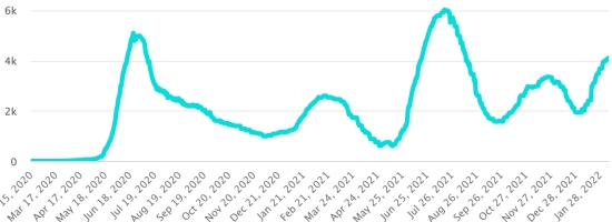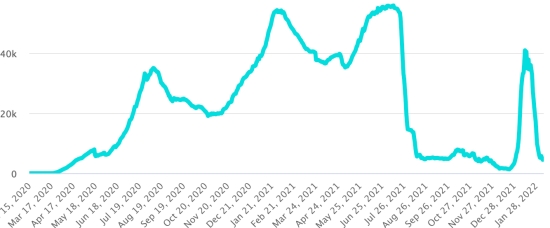 (Day-1) Vaccination: 543.62 million doses of vaccine injected since December 14, 2020, date of the first injection in the United States (+400,000 doses in 24 hours). Update February 7, 2022 (latest data available). DOMINICAN REPUBLIC: Confirmed cases since March 1, 2020: 563,657 cases (+1,044 in 24 hours) the day before (+956). First case (March 1, 2020) Healings: 554,590 healings (+774 in 24 hours), the day before (+1,327) National Cure Rate: 98.39% (-) Deaths: 4,329 deaths (+4 in 24 hours), the day before (+3) Death rate: 0.76% (=) Positive rate over 4 epidemiological weeks: 20.9% (-) Active cases: (excluding deaths and recoveries) 4,738 cases (+266 in 24 hours) the day before (-374) Dominican Republic: Trend of active cases: (minus recoveries and deaths)