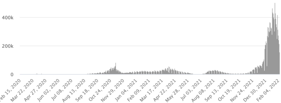 (Day-1) Vaccination: 10.24 billion doses of vaccine injected (+20 million doses injected in 24 hours. Update February 7, 2022 (latest data available). HAITI: Epidemiological situation: According to the Ministry of Public Health, +64 new cases in 24 hours of Covid-19 and its variants were confirmed in Haiti on February 2, 2022 (latest partial data available ) for a total of 29,779 confirmed cases throughout the national territory (48.4% women and 51.6% men), since the first case (March 19, 2020 https://www.haitilibre.com/en/news-30319-haiti-health-origin-of-the-first-2-cases-of-covid-19-in-haiti.html ). Previous update (+122 cases on February 1, 2022). Healings: 24,831 (+0 in 24h) Cure rate: 83.38% (-) Deaths: 804 deaths (+0) () Death rate: 2.69% (-) 5th Wave (Omicron Dominant): Total of the 5th wave (starting December 27, 2021) amounts to 3,784 confirmed cases and 38 deaths Haiti: Active Cases Trend: (less recoveries and deaths)