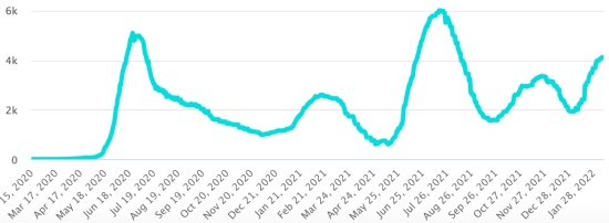 (Day-1) Vaccination: 10.30 billion doses of vaccine injected (+30 million doses injected in 24 hours. Update February 9, 2022 (latest data available). HAITI: Epidemiological situation: According to the Ministry of Public Health, +47 new cases in 48 hours of Covid-19 and its variants were confirmed in Haiti on February 4-5, 2022 (latest data available) for a total of 29,879 confirmed cases throughout the national territory (48.6% women and 51.4% men), since the first case (March 19, 2020 https://www.haitilibre.com/en/news-30319-haiti-health-origin-of-the-first-2-cases-of-covid-19-in-haiti.html ). Previous update (+64 cases on February 2, 2022). Healings: 24,951 (+27 in 48) Cure rate: 83.50% (-) Deaths: 806 deaths (+2) (west + 2) Death rate: 2.69% (=) 5th Wave (Omicron Dominant): Total of the 5th wave (starting December 27, 2021) amounts to 3,884 confirmed cases and 40 deaths Haiti: Active Cases Trend: (less recoveries and deaths)