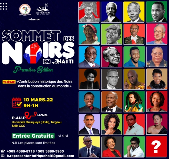 As part of strengthening ties between Haiti and Africa, promoting African values and Afro-descendants, the Office of the United Nations Youth Organization of Africa in Haiti (BOJNUAH), announces the 1st edition of the Black Summit, which will be held from March 10 to 13, 2022, in Port-au-Prince and Jacmel around the theme "Historical contribution of Blacks in the construction of the world". According to Amos Cincir (Special Representative in Haiti) and Olsen Barthelemy (Communication Director) of BOJNUAH, the Black Summit in Haiti intends to promote African and Afro-descendant culture, which is essential for the development of the continent and of Haiti but also for humanity in general. This initiative also aims to highlight the many living cultures of the African continent and African diasporas around the world, and promote them as a lever in the service of sustainable development, dialogue and peace. For Marc Derverson Beauvoir, Director of Projects and External Cooperation, this event aims to highlight the importance of multi-sectoral and multi-stakeholder partnerships and their positive impact for the effective implementation and monitoring of the 2030 Agenda for Sustainable Development between Haiti and Africa...