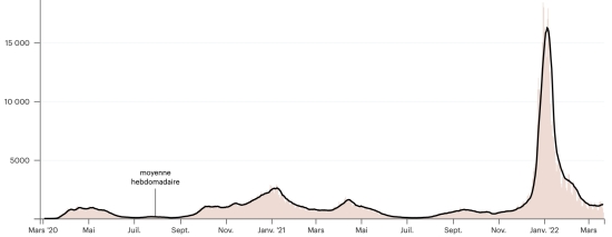 (average weekly trend) Vaccination: 18,571,415 doses of vaccine injected since December 14, 2020, date of the first injection (+21,417 doses in 72 hours), latest data available - MSSS as of March 21, 2022) FRANCE: *Confirmed cases since the first case (January 24, 2020): 24,161,339 cases (+24,179 cases in 24 hours), previous (+81,2283) *Healings: 22,641,524 healings (+79,642), previous (+13,453) National Cure Rate: 93.70% (+) Deaths: 141,085 (+152 in 24h), previous (+30) Death rate: 0.58% (=) Active Cases: 1,378,730 (-55,615), previous (+67,800) France: Number of daily confirmed cases: