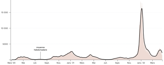 (average weekly trend) Vaccination: 19,171,992 doses of vaccine injected since December 14, 2020, date of the first injection (+33,663 doses in 24 hours), latest data available - MSSS as of April 20, 2022) FRANCE: *Confirmed cases since the first case (January 24, 2020): 27,972,010 cases (+155,711 cases in 24 hours), previous (+25,465) *Healings: 25,470,229 healings (+169,084), previous (+168,842) National Cure Rate: 91.05% (+) Deaths: 144,614 (+227 in 24 hours), previous (+182) Death rate: 0.51% (=) Active Cases: 2,357,167 (-13,600 in 24h), previous (+143,559) France: Number of daily confirmed cases: