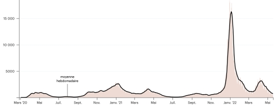(average weekly trend) Vaccination: 19,796,570 doses of vaccine injected since December 14, 2020, date of the first injection (+12,370 doses in 24 hours), latest available data - MSSS) FRANCE: *Confirmed cases since the first case (January 24, 2020): 29,263,304 cases (+29,995 cases in 24 hours), the day before (+43,727) *Healings: 28,395,236 healings (+59,680 in 24 hours), the day before (+67,621) National Cure Rate: 97.03% (+) Deaths: 147,648 deaths (+80 in 48 hours), the day before (+90 in 48 hours) Death rate: 0.50% (=) Active cases: 720,420 (-29,765 in 24 hours), the day before (-23,984) France: Number of daily confirmed cases: