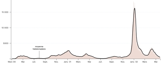 (average weekly trend) Vaccination: 19,862,505 doses of vaccine injected since December 14, 2020, date of the first injection (+9,511 doses in 24 hours), latest data available - MSSS) FRANCE: *Confirmed cases since the first case (January 24, 2020): 29,413,371 cases (+22,006 cases in 24 hours), the day before (+32,029) *Healings: 28,701,859 healings (+44,174 in 24 hours), the day before (+47,837) National Cure Rate: 97.58% (+) Deaths: 148,056 deaths (+51 in 48 hours), the day before (+88) Death rate: 0.50% (=) Active Cases: 563,456 (-22,219 in 24 hours), the day before (-15,896) France: Trend of active cases: (minus recoveries and deaths)
