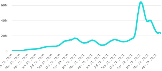 GLOBAL SITUATION 2019-2022: Epidemiological situation: Saturday May 28, 2022 the number of people infected worldwide with the Covid-19 coronavirus and its variants since the start of the pandemic (March 11, 2020) amounts to 531,042,860 cases (+575,370 in 24 hours ), the day before (+620.912) Number of infected countries: 225 *Healings: 501,666,682 people have been cured of Covid-19 worldwide (+615,769 in 24 hours), the day before (+708,807) *Deaths: 6,309,858 people have died of Covid-19 worldwide since the start of the pandemic (+1,746 in 24 hours), the day before (+1,616) *Active cases (minus deaths and recoveries) in the world is currently 23,066,320 cases (-42,145 in 24 hours), the day before (-89,511) World healing rate: 94.46% (+) Death rate in the world: 1.18% (=) World: Active cases trend: (minus recoveries and deaths)