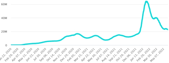 GLOBAL SITUATION 2019-2022: Epidemiological situation: Tuesday May 31, 2022 the number of people infected worldwide with the Covid-19 coronavirus and its variants since the start of the pandemic (March 11, 2020) amounts to 532,214,335 cases (+463,368 in 24 hours ), the day before (+279.156) Number of infected countries: 225 *Healings: 503,175,348 people have been cured of Covid-19 worldwide (+504,306 in 24 hours), the day before (+559,941) *Deaths: 6,312,118 people have died of Covid-19 worldwide since the start of the pandemic (+1,087 in 24 hours), the day before (+415) *Active cases (minus deaths and recoveries) in the world is currently 22,726,869 cases (-42,025 in 24 hours), the day before (-281,200) World healing rate: 94.54% (+) Death rate in the world: 1.18% (=) World: Active cases trend: (minus recoveries and deaths)