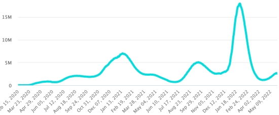 Vaccination: 11.87 billion doses of vaccine injected (+20 million doses injected). (Latest data available). HAITI: According to the Ministry of Public Health, +18 new cases of Covid-19 and its variants have been confirmed in Haiti as of May 23, 2022 (latest partial data available ) for a total of 30,818 confirmed cases throughout the national territory (48.7% women and 51.3% men), since the first case (March 19, 2020 https://www.haitilibre.com/en/news-30319-haiti-health-origin-of-the-first-2-cases-of-covid-19-in-haiti.html ). Previous update (+19 cases as of May 20, 2022). Heals: 29,695 (+11) Cure rate: 96.35% (-) Deaths: 835 deaths (+0) Mortality rate: 2.70% (-) Testing since the start of the pandemic: 201,322 tests since March 19, 2020 (+416 in 4 days) not statistically representative, which translates into a number of daily confirmed cases that is largely underestimated evaluated in the opinion of specialist observers. TOP 5 of the most affected municipalities in the West (2022): Delmas: 770 (+3); Petion-ville 628 (+0); Port-au-Prince 416 (+1); Tabarre 293 (+1); Cross-Bouquets 248 (+0) Confirmed cases by department (2022 / 2021 / 2020): West: 2022: 2,623 cases; (2021: 9.890); (2020: 6,945 cases) North: 2022: 291 cases; (2021: 664); (2020: 677 cases) Center: 2022: 284 cases; (2021: 1.001); (2020: 508 cases) Artibonitis: 2022: 192 cases; (2021: 855); (2020: 593 cases) Northeast: 2022: 158 cases; (2021: 404); (2020: 314 cases) Southeast: 2022: 315 cases; (2021: 768); (2020: 274 cases) South: 2022: 219 cases; (2021: 891); (2020: 262 cases) North West: 2022: 281 cases; (2021: 383); (2020: 229 cases) Grand'Anse: 2022: 192 cases; (2021: 861); (2020: 176 cases) Nippes: 2022: 39 cases; (2021: 249) (2020: 149 cases) Cumulative deaths by department (2022-2021): West: 296 deaths (2020: 104 deaths) North: 54 deaths (2020: 34 deaths) Center: 79 deaths (2020: 13 deaths) Artibonite: 42 deaths (2020: 39 deaths) North East: 7 deaths (2020: 6 deaths) South: 51 deaths (2020: 6 deaths) Southeast: 15 deaths (2020: 9 deaths) North West: 15 deaths (2020: 12 deaths) Grand'Anse: 7 deaths (2020: 13 deaths) Nippes: 27 deaths (2020: 5 deaths) Distribution of deaths by age (since the start of the epidemic): 0-9 years: 15 deaths 10-19 years: 10 deaths 20-29 years: 31 deaths 30-39 years: 56 deaths 40-49 years: 80 deaths 50-59 years: 135 deaths 60-69 years: 187 deaths 70-79 years: 184 deaths 80 years and over: 137 deaths Vaccination: 184,969 Haitians (1.59% of the population) +1,293 in 6 days have received a 1st dose of vaccine since July 16, 2021, date of the first injection through 149 open vaccination centers and 129,664 Haitians are fully vaccinated (2 doses, 1.11% of the population) +1.138 in 6 days. Update May 25, 2022 latest information available (source MSPP). List of the 149 Vaccination centers open in Haiti (and hours) by department: (updated October 20, 2021, latest information available) DIASPORA: Epidemiological situation: USA: *Cases since the first case (February 29, 2020): 85,730,597 cases (+14,383 in 24 hours), the day before (+4,772) *Healings: 82,151,831 healings (+43,479 in 24 hours), the day before (+103,049) National Cure Rate: 95.82% (+) Deaths: 1,031,286 (+13 in 24 hours), the day before (+14) Mortality rate: 1.20% (=) *Active cases (minus deaths and recoveries): 2,547,480 (-29,109 in 24 hours), the day before -98,291) USA: Trend active cases: (minus recoveries and deaths)