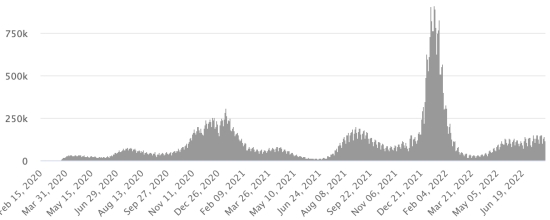 Vaccination: 604.35 million doses of vaccine injected since December 14, 2020, date of the first injection in the United States (+870,000) DOMINICAN REPUBLIC: Confirmed cases since March 1, 2020: 627,025 cases (+414 in 24 hours), the day before (+227 in 24 hours). First case (March 1, 2020) Healings: 619,937 healings (-51 correction), the day before (+125 in 24h) National Cure Rate: 98.94% (-) Deaths: 4,383 deaths (+0), the day before (+0) Mortality rate: 0.69% (-) Positivity rate over 4 epidemiological weeks: 12.84% (-) Active cases: (excluding deaths and recoveries) 2,705 cases (+465 in 24 hours) the day before (+102 in 24 hours) Dominican Republic: Number of daily confirmed cases: