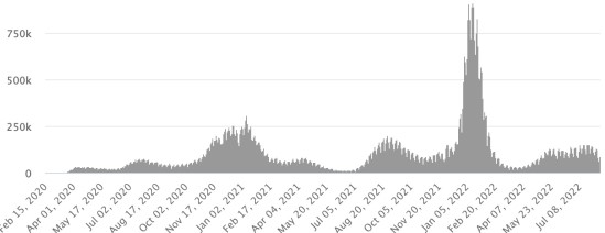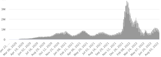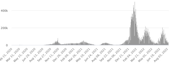 GLOBAL SITUATION 2019-2022: Epidemiological situation: Thursday August 11, 2022 the number of people infected worldwide with the Covid-19 coronavirus and its variants since the start of the pandemic (March 11, 2020) amounts to 592,568,592 cases (+1,085,447 in 24 hours ), the day before (+1,075,272 in 24h) Number of infected countries: 228 *Healings: 564,410,705 people have been cured of Covid-19 worldwide (+996,885 in 24 hours), the day before (+1,224,901 in 24 hours) *Deaths: 6,446,496 people have died of Covid-19 worldwide since the start of the pandemic (+4,079 in 24 hours), the day before (+3,485 in 24 hours) *Active cases (less deaths and recoveries) in the world is currently 21,711,391 \ cases (+84,483 in 24h), the day before (-153,114 in 24h) Cure rate in the world: 95.24% (-) Death rate in the world: 1.08% (=) World: Number of daily confirmed cases:
