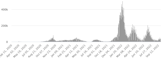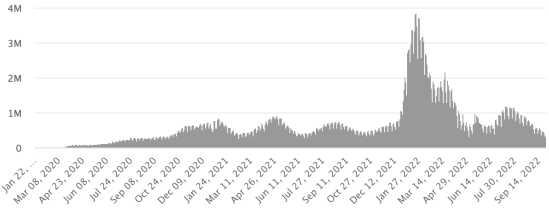 Vaccination: 12.80 billion doses of vaccine injected (+30 million doses). (Latest data available). HAITI: Warning: The Ministry of Public Health and Population (MSPP) did not make available after September 13, 2022 daily data on the Covid-19 situation in Haiti. As a result, the data below on the situation in Haiti is the latest available. According to the Ministry of Public Health, +12 new cases of Covid-19 and its variants have been confirmed in Haiti as of September 13, 2022 (latest partial data available ) for a total of 33,721 confirmed cases throughout the national territory (48.8% women and 51.2% men), since the first case (March 19, 2020 https://www.haitilibre.com/en/news-30319-haiti-health-origin-of-the-first-2-cases-of-covid-19-in-haiti.html ). Previous update (+19 cases as of September 10, 2022). Healings: 31,307 (+41) Cure rate: 92.84% (+) Deaths: 857 deaths (+0) Death rate: 2.54% (=) Screening since the start of the pandemic: 221,398 tests since March 19, 2020 (+250 in 3 days) a number of tests for the entire national territory, statistically insufficient to be representative of the health situation , which results in a number of daily confirmed cases that is largely underestimated in the opinion of health specialists. Haiti: Active Cases Trend: (less recoveries and deaths)