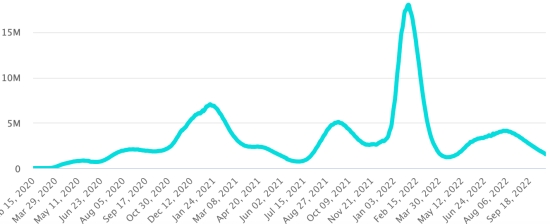 Vaccination: 12.93 billion doses of vaccine injected (+80 million / upgrade). (Latest data available). HAITI: Warning: The Ministry of Public Health and Population (MSPP) did not make available after September 23, 2022 daily data on the situation of the Covid-19 in Haiti. Due to the climate of violence, insecurity and lack of fuel in Haiti, it has become very difficult or even impossible for the teams of the Ministry of Health to carry out screening and publish complete and regular situation reports. As a result, the data below on the situation in Haiti is the latest available. According to the Ministry of Public Health, +5 new cases of Covid-19 and its variants have been confirmed in Haiti as of September 23, 2022 (latest partial data available ) for a total of 33,761 confirmed cases throughout the national territory (48.8% women and 51.2% men), since the first case (March 19, 2020 https://www.haitilibre.com/en/news-30319-haiti-health-origin-of-the-first-2-cases-of-covid-19-in-haiti.html ). Previous update (+35 cases as of September 20, 2022). Healings: 31,432 (+22) Cure rate: 93.10% (+) Deaths: 857 deaths (+0) Death rate: 2.53% (=) Screening since the start of the pandemic: 221,823 tests since March 19, 2020 (+145 in 3 days) a quantity of tests for the entire national territory, statistically insufficient to be representative of the health situation , which results in a number of daily confirmed cases that is largely underestimated in the opinion of health specialists. TOP 5 of the most affected municipalities in the West (2022): Delmas: 1.251 (+0); Petion-ville 1.117 (+0); Port au Prince 645 (+0); Tabarre 515 (+0); Croix-des-Bouquets 435 (+0) Confirmed cases by department (2022 / 2021 / 2020): West: 2022: 4,434 (+) cases; (2021: 9.890); (2020: 6,945 cases) North: 2022: 393 (=) cases; (2021: 664); (2020: 677 cases) Center: 2022: 427 (=) cases; (2021: 1.001); (2020: 508 cases) Artibonite: 2022: 400 (=) cases; (2021: 855); (2020: 593 cases) Northeast: 2022: 280 (=) cases; (2021: 404); (2020: 314 cases) Southeast: 2022: 384 (=) cases; (2021: 768); (2020: 274 cases) South: 2022: 332 (+) cases; (2021: 891); (2020: 262 cases) North West: 2022: 442 (=) cases; (2021: 383); (2020: 229 cases) Grand'Anse: 2022: 307 (=) cases; (2021: 861); (2020: 176 cases) Nippes: 2022: 137 (+) cases; (2021: 249) (2020: 149 cases) Cumulative deaths by department (2022-2021): West: 303 deaths (2020: 104 deaths) North: 54 deaths (2020: 34 deaths) Center: 91 deaths (2020: 13 deaths) Artibonite: 43 deaths (2020: 39 deaths) North East: 7 deaths (2020: 6 deaths) South: 51 deaths (2020: 6 deaths) Southeast: 15 deaths (2020: 9 deaths) North West: 16 deaths (2020: 12 deaths) Grand'Anse: 7 deaths (2020: 13 deaths) Nippes: 27 deaths (2020: 5 deaths) Distribution of deaths by age (since the start of the epidemic): 0-9 years: 16 deaths 10-19 years: 11 deaths 20-29 years: 33 deaths 30-39 years: 58 deaths 40-49 years: 82 deaths 50-59 years: 137 deaths 60-69 years: 191 deaths 70-79 years: 189 deaths 80 years and over: 140 deaths Vaccination: 361,212 Haitians (3.11% of the population) +2,307 in 8 days have received a 1st dose of vaccine since July 16, 2021, date of the first injection through 149 open vaccination centers and 222,303 Haitians are fully vaccinated (2 doses, 1.91% of the population) +658 in 8 days. Update September 20, 2022 latest information available (source MSPP). List of the 149 Vaccination centers open in Haiti (and hours) by department: (updated October 20, 2021, latest information available) DIASPORA: Epidemiological situation: USA: *Cases since the first case (February 29, 2020): 98,907,747 cases (+29,860 in 24h), previous (+27,762 in 24h) *Healings: 96,293,705 healings (+62,521 in 24h), previous (+62,831 in 24h) National Cure Rate: 97.35% (+) *Deaths: 1,091,086 deaths (+284 in 24 hours), previous (+266 in 24 hours) Mortality rate: 1.10% (=) *Active cases (minus deaths and recoveries): 1,522,956 cases (-32,945 in 24 hours), previous (-35,335 in 24 hours) USA: Trend active cases: (minus recoveries and deaths)