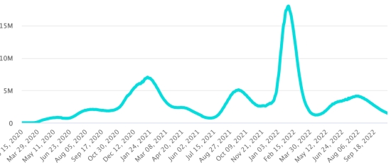 GLOBAL SITUATION 2019-2022: Sunday October 23, 2022 the number of people infected worldwide with the Covid-19 coronavirus and its variants since the start of the pandemic (March 11, 2020) amounts to 632,776,675 cases (+233,462 in 24 hours ), preceding (+510.926 in 24h) Number of infected countries: 228 *Healings: 611,605,108 people have been cured of Covid-19 worldwide (+317,602 in 24 hours), previous (+369,768 in 24 hours) *Deaths: 6,582,445 people have died of Covid-19 worldwide since the start of the pandemic (+616 in 24 hours), previous (+1,818 in 24 hours) *Active cases (less deaths and recoveries) in the world is currently 14,589,122 cases (-84,756 in 24 hours), previous (+66,556 in 24 hours) World healing rate: 96.65% (+) Death rate in the world: 1.04% (=) World: Number of daily confirmed cases: