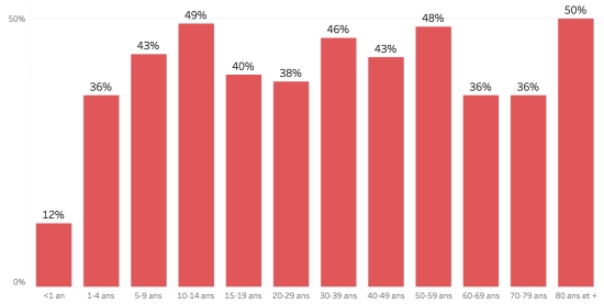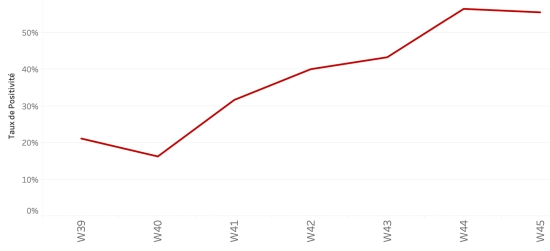 Distribution and deviations of suspected cases since October 3 (in 24 hours): Less than 1 year: +162 (+12) 1-4 years: 1,493 cases (+151) 5-9 years: 1,076 cases (+79) 10-14 years: 486 cases (+49) 15-19 years old: 364 cases (+19) 20-29 years old: 1,222 cases (+89) 30-39 years old: 1,215 cases (+83) 40-49 years old: 817 cases (+74) 50-59 years old: 545 cases (+73) 60-69 years old: 330 cases (+39) 70-79 years old: 155 cases (+17) 80 years and over: () case () Men: 59.96% men (+); women 40.04% (-) Positivity rate by age segment: