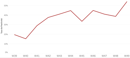 December 16, 2022: (latest data available) Data calculated since the first confirmed case (October 3, 2022) Total suspected cases: 16.336 cases +1.026 (+6.70%) in 24 hours (previous: -90 in 24 hours) Total confirmed cases: 1,310 cases +0 (%) in 24 hours, (previous: +1 in 24 hours) Total suspected cases hospitalized: 14,140 cases +979 (+7.43%) in 24 hours, (previous +152 in 24 hours) Total deaths: 308 deaths (205 institutional and 103 community) +3 deaths (+0.98%) in 24 hours, (previous: +1 death in 24 hours). * Corrections from the Ministry Partial assessment of cholera in Haiti according to data from the Department of Epidemiology, Laboratories and Research of the Ministry of Public Health. Weekly positivity rate :