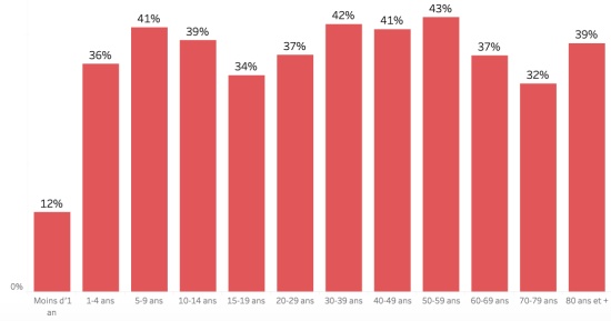 Distribution and deviations of suspected cases, total since October 3 (in 24 hours): Less than 1 year: +318 (+9) 1-4 years: 3,347 cases (+119) 5-9 years: 2,436 cases (+86) 10-14 years old: 1,199 cases (+47) 15-19 years old: 892 cases (+34) 20-29 years old: 2,622 cases (+83) 30-39 years old: 2,505 cases (+79) 40-49 years old: 1,693 cases (+48) 50-59 years old: 1,187 cases (+39) 60-69 years old: 737 cases (+29) 70-79 years old: 380 cases (+8) 80 and + 31 cases (+2) Men: 58.27% men (-); Women 41.73% (+) Positivity rate by age segment: