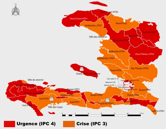 The famine situation for the first time in Haiti, in Cité Soleil with a proportion of households in phase 5 https://www.haitilibre.com/en/news-38357-haiti-flash-the-hour-is-serious-19-000-haitians-affected-by-famine-47-million-in-food-insecurity.html has improved : thanks to exceptional emergency food assistance. The proportion of households in this commune, which was in a situation of famine, fell from 5% to 0%. However, humanitarian efforts are and remain necessary to prevent a deterioration of the situation of these households. The Artibonite HT03 and HT04 areas classified as IPC 3 and above, poorly assisted are characterized by a high rate of food insecurity of around 50%, due to gang violence which considerably reduces the population's access to health services. base and income opportunities, require special attention. Due to the severity of the situation, urgent actions are required to provide support to nearly 50% of the population. Establishing the point between emergency and development interventions, in order to reduce the vulnerability of households, is desirable. Decapitalized agricultural households, due to economic and climatic shocks and the poor performance of previous agricultural campaigns, require immediate support for the implementation of the 2023 spring campaign. Otherwise, this campaign would be greatly jeopardized and food security conditions of these groups would be worse. See also : https://www.haitilibre.com/en/news-38866-haiti-grand-anse-on-the-verge-of-famine.html HL/ HaitiLibre