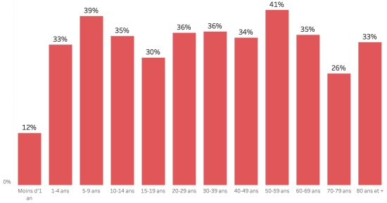 April 4th, 2023: (latest data available, previous Ministry bulletin March 23, 2023 https://www.haitilibre.com/en/news-39271-haiti-cholera-daily-bulletin-147.html Data calculated since the first confirmed case (October 3, 2022) Total suspected cases: 39,412 cases +109 in 24 hours (0.02%), previous +57 in 24 hours Total confirmed cases: 2,592 cases +0 (%), previous +9 Total hospitalized cases (suspected and confirmed): 33,928 cases +102 in 24 hours (0.03%), previous +54 in 24 hours Total deaths: 652 deaths ((437 institutional (+0) and 213 community (+0)) +0 in 48 hours (%), previous: +3 Partial assessment of cholera in Haiti according to data from the Department of Epidemiology, Laboratories and Research of the Ministry of Public Health and Population (MSPP). Distribution and deviations of suspected cases, total since October 3rd : Less than 1 year: + 885 (+8) 1-4 years: 8,034 cases (+17) 5-9 years: 5,733 cases (+20) 10-14 years old: 2,833 cases (+7) 15-19 years old: 2,081 cases (+6) 20-29 years old: 5,153 cases (+15) 30-39 years old: 4,432 cases (+11) 40-49 years old: 3,244 cases (+8) 50-59 years old: 2,447 cases (+8) 60-69 years old: 1,722 cases (+5) 70-79 years old: 970 cases (+4) 80 years and over: 98 cases cases (The MSPP no longer updates this data) Men: 54.94% men (-); Women 45.046% (+) Positivity rate by age segment: