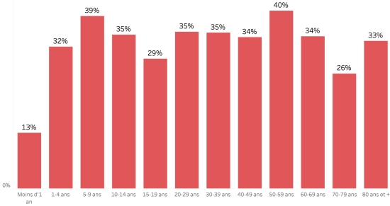 April 19, 2023: (latest data available, previous Ministry bulletin April 18, 2023 https://www.haitilibre.com/en/news-39403-haiti-cholera-daily-bulletin-162.html Data calculated since the first confirmed case (October 3rd, 2022) Total suspected cases: 40,620 cases +53 in 24 hours, the day before +149 in 24 hours Total confirmed cases: 2,677 cases +5, the day before +1 in 24 hours Total hospitalized cases (suspected and confirmed): 35,127 cases +49 in 24 hours, the day before +143 in 24 hours Total deaths: 670• deaths ((448 institutional (+0) and 222 community (+0)) +0, the day before +0 * Information not updated for 3 days Partial assessment of cholera in Haiti according to data from the Department of Epidemiology, Laboratories and Research of the Ministry of Public Health and Population (MSPP). Distribution and deviations of suspected cases, total since October 3: (Partial update) Less than 1 year: + 935 (+2) 1-4 years: 8,271 cases (+8) 5-9 years: 5,909 cases (+10) 10-14 years old: 2,940 cases (+6) 15-19 years old: 2,126 cases (+1) 20-29 years old: 5,306 cases (+6) 30-39 years old: 4,555 cases (+6) 40-49 years old: 3,344 cases (+2) 50-59 years old: 2,543 cases (+4) 60-69 years old: 1,786 cases (+6) 70-79 years old: 1,022 cases (+2) Men: 54.82% men (+); Women 45.17 (-) Positivity rate by age segment: