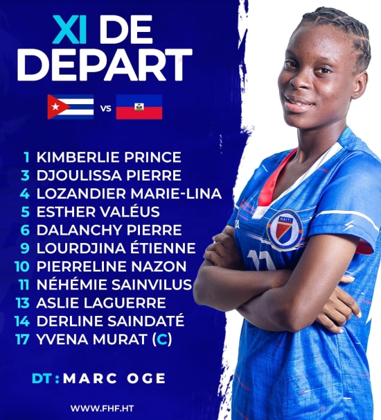 This Tuesday, August 29, 2023, as part of the U-17 Women's Championship of the Confederation of North America, Central America and the Caribbean (CONCACAF), our young Grenadières faced the "Lionesses" of Cuba on the lawn of the San Cristobal Pan American Stadium in the Dominican Republic Our Grenadières left the "Lionesses" no chance by humiliating Cuba [6-0], including 3 goals in the first period, Our young Grenadières U-17 easily retained their first place in Group B and with 6 points and 18 goals scored in 2 matchs, qualified for the second round of this CONCACAF Women's U17 Championship , qualifying for the FIFA World Cup in the category in 2024. Goals: Dalanchy Pierre: 26' Ludjina Etienne: 32', 65' Pierreline Nazon: 36' 71' Derline Saindate: 60' Starting XI: