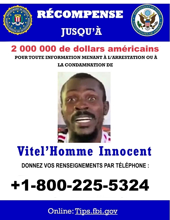 The United States supports the efforts of our Haitian law enforcement partners to enforce rule of law in Haiti and combat transnational organized crime. Any information in response to the reward offer should be directed by telephone to +1-800-225-5324 or to the FBI online at:Tips.FBI.Gov. Download the Vitel’homme Innocent sheet (PDF in English): https://www.haitilibre.com/docs/vitelhomme-innocent_EN.pdf See also : HL/ HaitiLibre