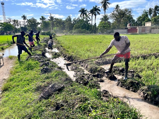 In the Les Cayes plain, rice production depends on a stable and efficient irrigation system. However, sediment accumulation and invasive vegetation have clogged the canals, reducing water flow and leaving the rice fields dry. To restore efficient irrigation and ensure that the rice fields receive sufficient water throughout their growing cycle, the Taiwan Technical Mission (TTM) in Haiti partnered with local farmers' organizations.
