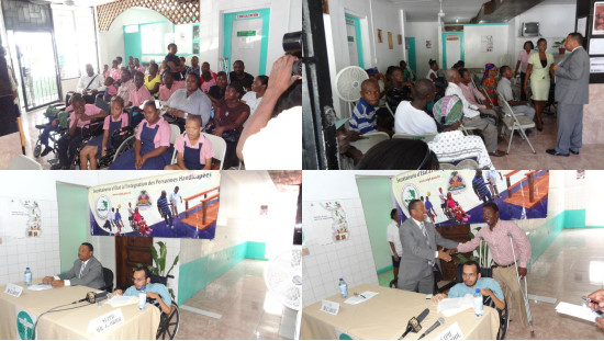 In addition to free health care, the beneficiaries of this agreement, members of associations regularly registered at BSEIPH will have access to community pharmacies of DASH and be able to obtain generic drugs at a cost of 100 gourdes by medication, whatsoever. The access to the laboratory community of DASH is also provided in this agreement. Radiographs, sonographic examinations, paraclinical examinations and emergency care will be offered to disabled to preferential costs. The DASH is also committed to provide these people, preventive health services in the areas of HIV\AIDS, of the family planning and of health education. In addition, all children under 6 years of program beneficiaries, will have access to consultations and free vaccinations at the medical centers of the DASH. Was present at the signing Dr. Ronald Laroche, Director of the organization DASH, staff members of BSEIPH and DASH, representatives of associations working in the disability field and of beneficiaries of the program. Responsibles of the agency pharmaceutical PROPHALAB and of the organization FHADIMAC also attended the signing ceremony. The PROPHALAB has in addition donated a first batch of medicines for people with disabilities as part of this project. In Haiti almost 10% of the population lives with a disability and only 5% of this group have access to health care. HL/ HaitiLibre