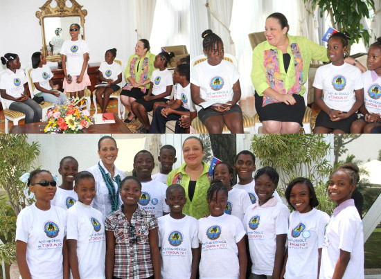 Sophia Martelly, the First Lady of the Republic of Haiti, met Tuesday, June 5, 2012, at the National Palace, on the occasion of the week of activities around the Children in Haiti, a delegation of 14 students accompanied by representatives of the Institute of Social Welfare and Research (IBESR) including its Director, Ms. Ms Arielle Jeanty Villedrouin, and the association Enpak. This little chat with the First Lady, which took place under the sign of friendliness and brotherly love, has enabled these children to discuss topics related to education, recreation and their vulnerability. Attracted by the opening of their host and focusing on the theme "Ayiti ap dekole ak timoun yo", heme adopted this year for the Week of the Child, these young people began a sincere discussion on issues around personal and professional life of the First Lady, her childhood dream her first concern, best memories, conception of childhood, social vision... All the interventions had the sole aim of allowing children to use the experiences and ideas of the First Lady, as well as those of adults, for better channel their path in life. Thus, the daily problems that affect them, such as the right to education, child participation in social, cultural, the right to support for disabled children... he First Lady reassured them of the commitment of present Government, in favor of their cause.
