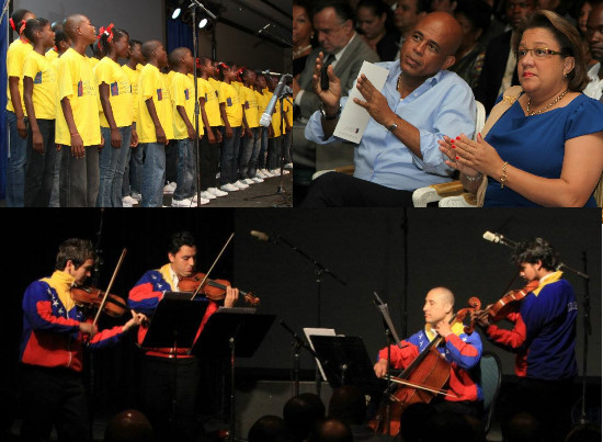 Mr. Andres Gonzalez, Venezuelan Delegate of Program "El Sistema", which serves as a model to the project of the INAMUH, wished to thank the President Martelly of having wished to associate it, as well as the Maestro Jose Antonio Abreu, to this initiative. He also stressed the positive impact that such a program can have on the future and the personality of children who thus learn to express themselves and become true creators. He also renewed the will of the Venezuelan government to provide support to this project. The ceremony was concluded by the performance of young of quartet Libertadores of Venezuela, who have shown professionalism and great technical expertise and have charmed the audience by interpreting, in a masterly way, our "Choucoune".