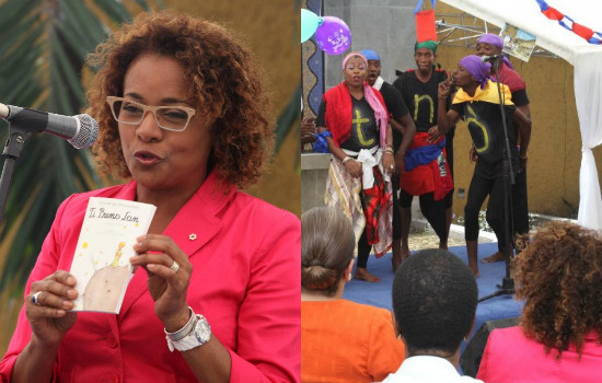 At this event, Michaëlle Jean and writer Emmelie Prophète, have respectively read excerpts from "Ti Prens lan", the translation of Gary Victor, of the "Little Prince" by Antoine de Saint-Exupery; and of "Flè dizè" of the storyteller Jean Claude Martineau [aka "Koralen"]. The reading session of texts was followed by a theatrical creation around the 35 neighborhoods of Port-au-Prince.