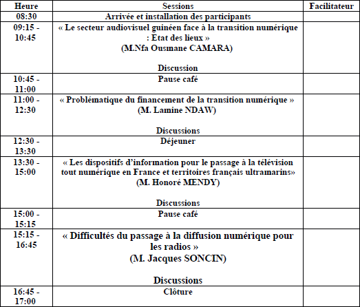 As part of the launch of the migration process from analogue to digital television in Haiti, the National Telecommunications Council (CONATEL) is organizing a workshop on "the challenges of the transition from analogue to digital TV" which will be held on 12 and 13 July 2012 at the new University Campus Henri Christophe of Limonade (Department of the North). This workshop, moderated by the International Association Francophone Solidarity for Digital (Association Internationale Solidarité Francophone pour le Numérique - SFN), is part of information activities and of awareness on economic, technical and legal issues relating to the transition from analogue to digital TV, and will mark the launch in Haiti of the migration process from analogue television era to the digital age. All the actors concerned by the transition from analogue to digital TV and the digital dividend have been invited to attend this important workshop : policy makers, broadcasters, telecommunications operators, media associations. "The challenges of the transition from analogue to digital TV in the audiovisual sector" Awareness seminar in Cap Haitien, from 12 to 13 July 2012 Day 1 - 12 July