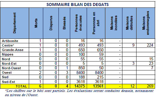 Haiti - Social : First Provisional assessment by region + Message of President Martelly 26/08/2012 09:10:02