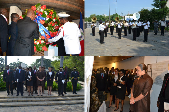 Mr. Ady Jean Gardy, Minister of Communication, informs that in all the cities of the Republic of Haiti, appropriate ceremonies were held to commemorate the 209th anniversary of the victory of Vertières. Members of the Cabinet of Ministers, which is the largest instance of state affairs, have attended the official ceremonies of homage to the heroes of the Battle of Vertières in the presence of the First Lady of the Republic, Mrs. Sophia St Remy Martelly and of the Minister of Economy and Finance, Marie Carmelle Jean Marie in charge of the event of 18 November. Following the deposition of the wreath on the easel of honor, Government Ministers, Directors General and their assistants, together with the High Command of the National Police, made a tour in the National Pantheon Museum to salute the memory of the Founding Fathers of the homeland. At the end of the ceremony, the fanfare of National Palace has performed with flame the hymn known of all students "Proud Haiti, Proud Fatherland", making vibrating the souls of all the patriots gathered.