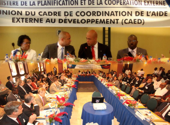 The President Michel Martelly, accompanied by the Prime Minister, Laurent Lamothe, has proceeded, Monday, November 26, in the presence among others : of Haitian officials, representatives of the friends of Haiti and international agencies working in the country, to the launch of the Coordination framework of the External Aid for Development (CAED), which is a permanent mechanism of permanent and regular dialogue [that replaces the IHRC] between the Haitian Government and its partners. Proposed by the Ministry of Planning and External Cooperation, the CAED, which is based on three levels (strategic, sectoral and territorial), has as general objective, he establishment of operating modes allowing external assistance to support the priorities of economic and social development of Haiti through :