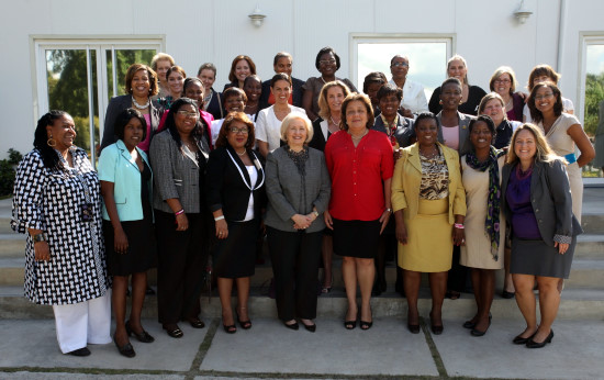 Monday at the National Palace, Ms. Sophia Martelly, the First Lady of Haiti, met the ambassador-at-Large of the United States on issues related to women and girls around the world, Ms. Melanne Verveer and more than 20 other women during a working session. The meeting, conducted on human trafficking, women's empowerment and women's entrepreneurship has attended, in the presence, among other, of he U.S. Ambassador to Haiti, Pamela White, of a few women Ministers in the Government, women parliamentarians and Goodwill Ambassador of Haiti, Danielle Saint-Lot. The First Lady took advantage of the visit of Ms. Verveer, to encourage women leaders to work together. Ms. Martelly also stressed the personal commitment of President Martelly, in the involvement of women in decision making at all levels of Haitian society recalling that "7 women ministers around the table were appointed by the Administration Martelly-Lamothe. 5 women in Parliament have won a victory constitutional, the 30% quota for women at all levels of national life, and particularly in public administration is met and exceeded," welcomed Ms. Martelly.