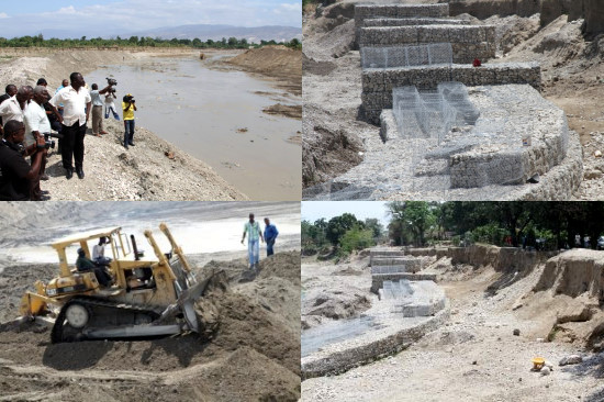 Friday, the Agricultural Engineer Thomas Jacques, Minister of Agriculture, accompanied by Agricultural Engineer Arnoux Severin, Departmental Director of the West visited the clearing works and gabionade in the Rivière Grise, in order to see the progress of the work. These works carried out in Rivière Grise, at a cost of 62 million gourdes from the coffers of the State, on a distance of 6.30 km, will go from the bridge of Tabarre through the bridge of Croix-des-Missions to finish on the brdge of Duvivier located in the town of Cité Soleil and will last 3 months. The Minister of Agriculture said found that work are proceeding normally and recalled that the Administration Martelly-Lamaothe took the initiative to clean out the Rivière Grise after the passage of Sandy, which caused a lot of damage and left considerable damage to the river.