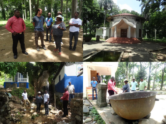 After visiting "Roche à l'Inde", another site within a locality of Limbé, the delegation went to Bas-Limbé to meet the "Dede" of Saut d'Eau, where is located a large waterfall and a voodoo shrine, a place of religious pilgrimage. Together with the Mayor of the area, Mrs. Dieudonne Luma Étienne said to consider the possibility that the Ministry of Tourism, provide accompaniment for the rehabilitation of the site.
